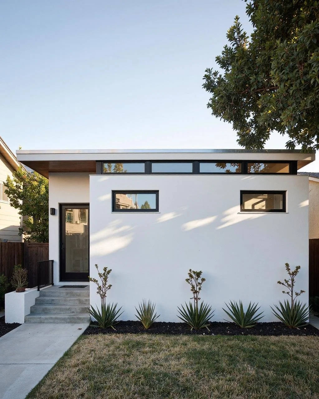 Geometry without ornament — the language of the city's newest neighborhoods and most common ADUs.